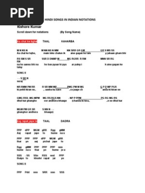 Hindi Songs In Indian Notations - Rajesh khanna, asha parekh, prem chopra and others.